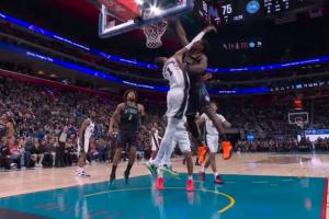 都没看清球就飞了!坎宁安自信上篮 文班光速弹射直接抡臂扇飞